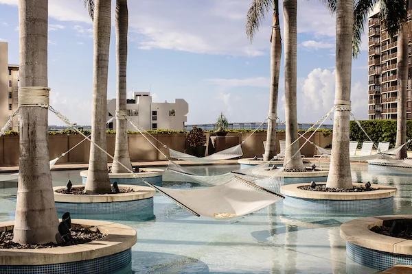 CITY SLEEPER Close to the free Metromover that covers seven kilometres of downtown, The Four Seasons Brickell is ideally located for visiting the city’s sports and entertainment arenas. Entrance to the seventh-floor lobby reveals mid-century Hans Wagner-style chairs, wood panelling and bold artwork, but the real kicker is its expansive rooftop pool. Rooms from $239. (1435 Brickell Avenue, +1 305 358 3535; fourseasons.com)
